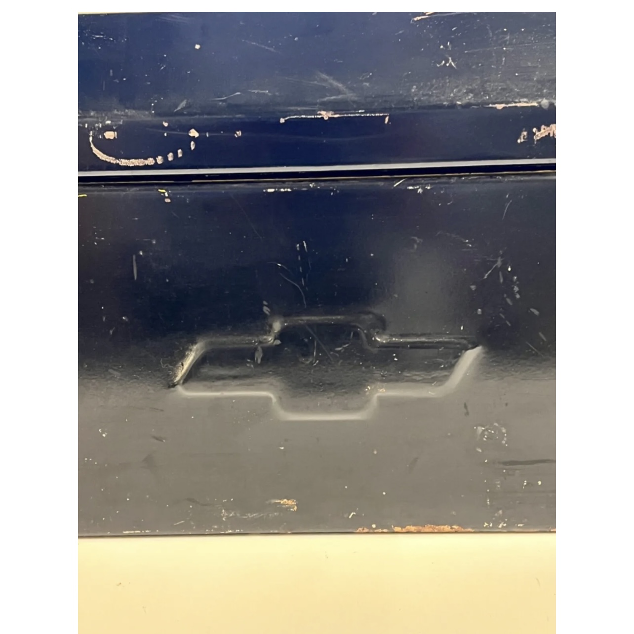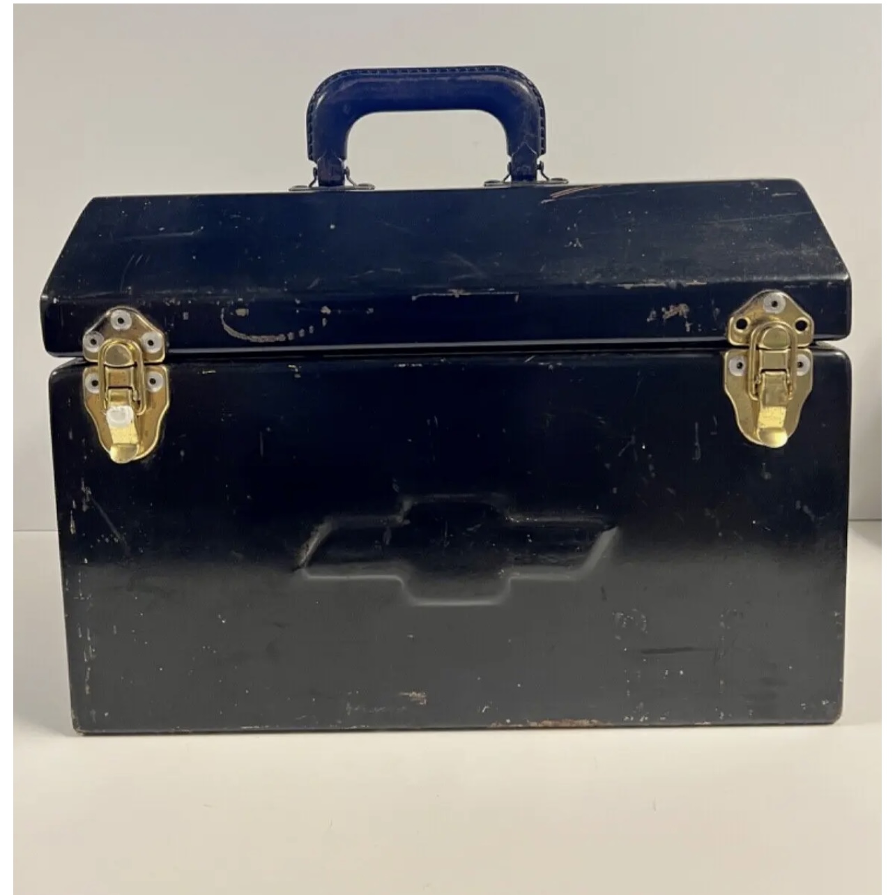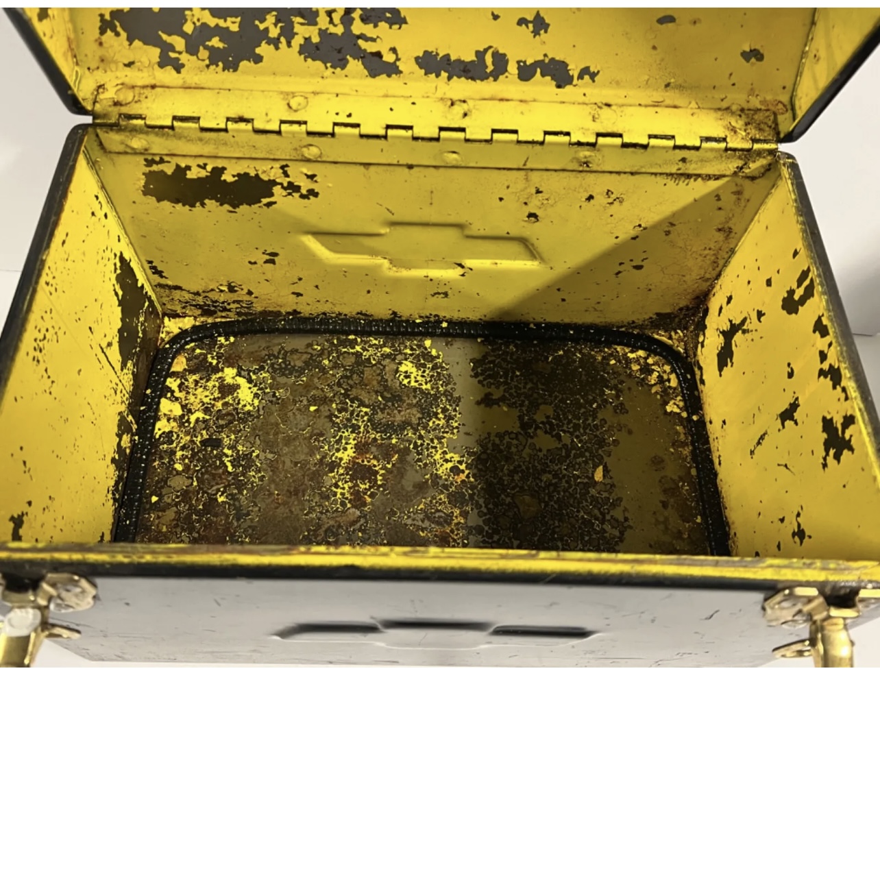 See all photographs as No Returns. RARE! 1940s to 1950’s. No big dents just scratches and wear from use. You can re-paint or leave as is since it gives it character. Some rust on inside bottom (can be sanded off) but still rock solid. This should be displayed in the trunk of your vintage or classic car, vintage pickup truck, or low-rider. The price is because this is the only one I have seen like this in fifty years of collecting and selling antiques. If it does not sell, I will just keep it.